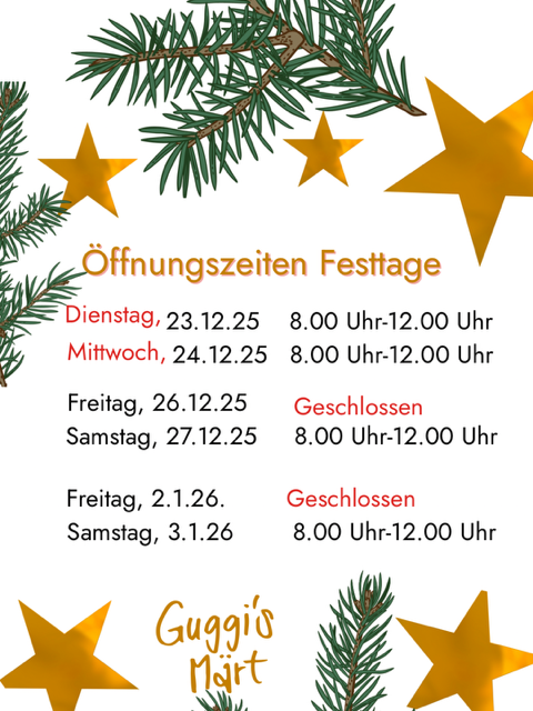 23. und 24. Dezember haben wir für Euch geöffnet. Wir freuen uns auf Euren Besuch.
